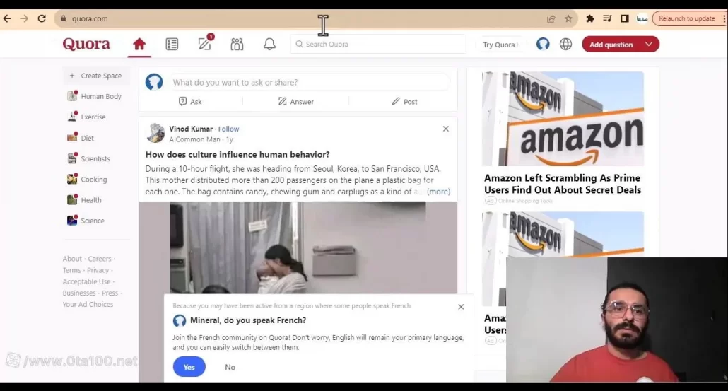 قبلا در رابطه با کسب درآمد دلاری روزانه از وبسایت quora ویدیوهای متعددی را روی چنل قرار دادم که پیشنهاد میکنم آنها را از دست ندهید. اما روش امروز! ما توی quora ثبت نام کردیم و log in کردیم که بسیار ساده است و دیگر در ویدیوهایم راجع به ثبت نام و log in کردن چیزی نمیگویم و آموزش نمیدهم، چرا که حوصله بسیاری از افراد سر میرود.