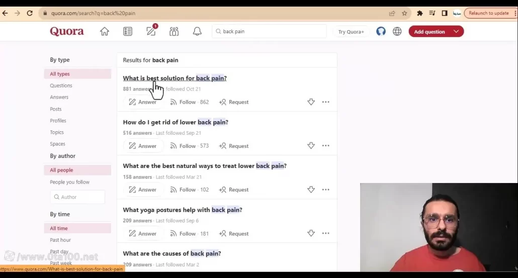 یکی از بزرگترین پلتفورمهای دنیای وب، وبسایت quora است. کوارا یک وبسایت انجمن و تالار گفتگو است. یعنی افراد میآیند تاپیکها موضوعهایی را ایجاد میکنند، سؤالهایشان را مطرح میکنند و بقیه کاربرها میآیند به آن سؤال جواب میدهند و بقیه خوانندهها و بازدیدکنندههای وبسایت به آن پاسخها vote یا رأی میدهند. مثل لایک و دیسلایک. یعنی همه با این پلتفورم درگیرند. چه شخصی که سؤال مطرح میکند، چه افرادی که پاسخ میدهند، چه افرادی که فقط مطالب را میخوانند. بنابراین طبیعی است که رتبه بالایی در گوگل داشته باشد. در نتیجه، بازدیدکنندههای زیادی را در طول شبانهروز دارد.