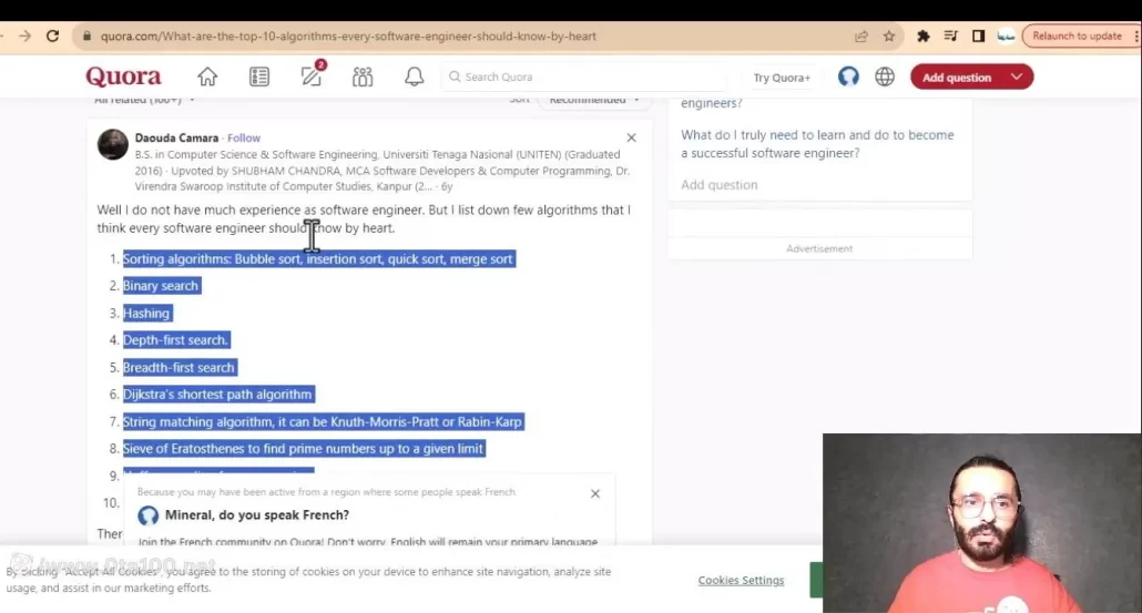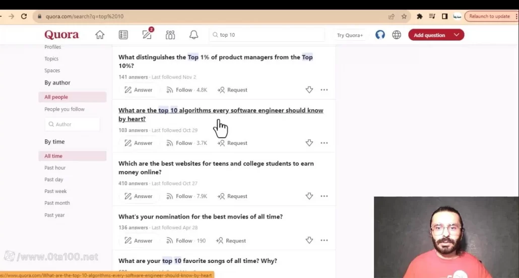مثلا من این را باز میکنم. همان طور که میبینید سؤالی را مطرح کرده است و افرادی هم به آن پاسخ دادند. من یکی از پاسخهایی که به نظرم خوب رسید را مشخص کردم و این ده مورد را کپی میکنم. میخواهیم این تاپ تن را تبدیل به یک مقاله کنیم و در بعضی از وبسایتها بفروشیم.