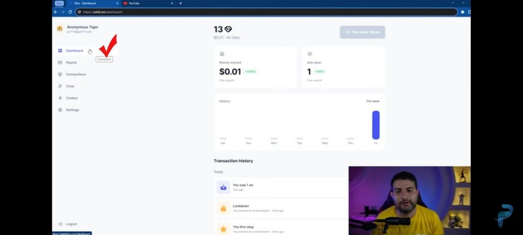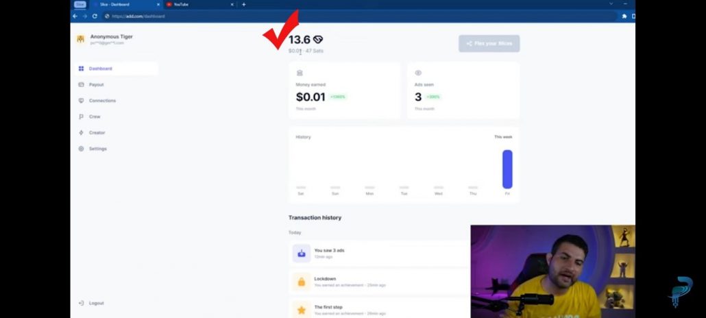 اون بالا که نوشته 13.6 یعنی به ازای هر تبلیغی که ببینید، به شما اسلایس پرداخت میکنه و این اسلایسهایی که به شما پرداخت میکنه، در قسمتای بعدی تبدیل میشه به درامد دلاری و شما میتونین از این درامد دلاری استفاده کنین.
