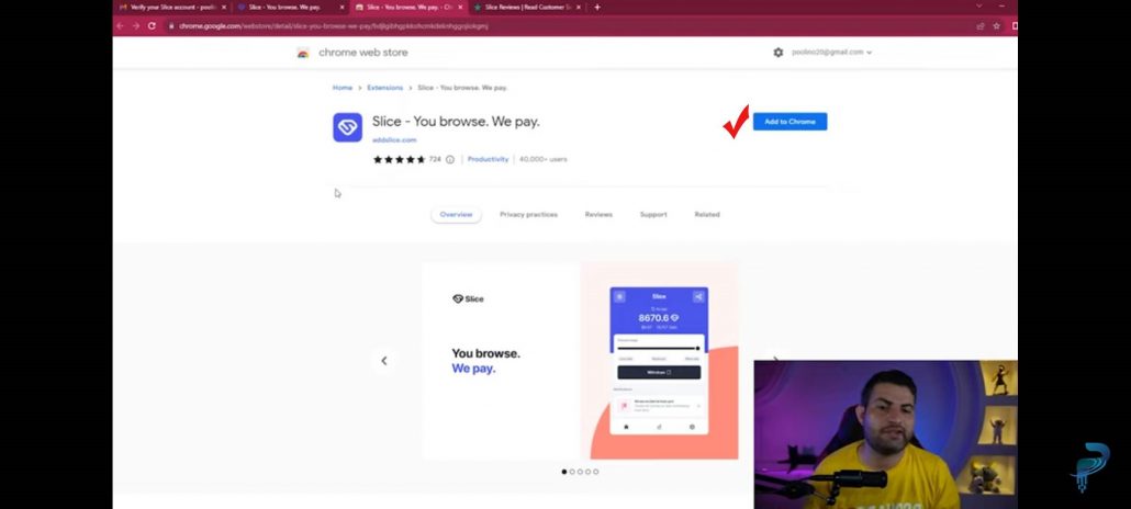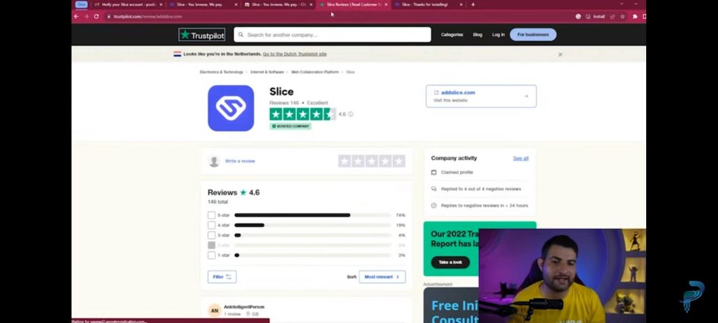 خب برمیگردم به صفحه اصلی اکستنشن، اسلایس slice یه افزونه خیلی خوبه که همونطور که دیدید 40 هزارتا کاربر فعال داره. و برای اینکه بازم مطمئن بشیم که این افزونه بدافزار نیست و میتونه خیلی درآمد خوبی رو برامون داشته باشه، مثل همیشه مراجعه میکنیم به سایته trustpilot.