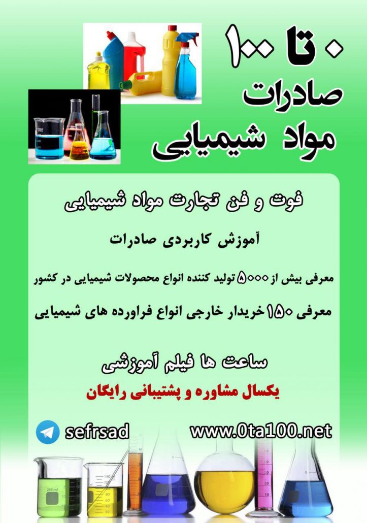 برای صرفه جویی در وقت و پول شما و همچنین کوتاه کردن دست دلالان, اطلاعات تماس تولید کنندگان و صادرکنندگان تولید کنندگان محصولات شیمیایی در پکیج صفر تا صد صادرات صنایع شیمیایی  قابل دسترسی است.